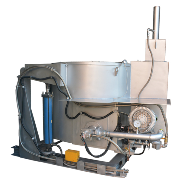 2.原理:可傾式燃氣熔化爐是通過將天然氣的化學能轉換為熱能,對內膛坩堝進行直接火焰加熱,坩堝通過熱傳遞將坩堝內的鋁錠/水口進行熔解,并使用油缸把爐體進行90度傾倒使得帶嘴坩堝內的鋁水能夠完全倒出的一種五金熔解設備。