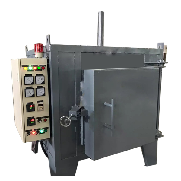 其加熱元件是采用耐高溫電熱合金絲繞制而成,合理安裝在爐膛兩壁及爐底的擱磚上,加熱工件放在爐膛內(nèi)的耐熱鋼爐底板上,爐門的升溫是通過手搖鏈輪來進(jìn)行,爐頂上開設(shè)有一熱電偶孔,在使用時(shí)將熱電偶插入爐膛,通過溫度控制柜來控制爐溫和超溫保護(hù)。控制柜有位式控制和可控硅控制之分,用戶可根據(jù)自行需求,由我公司為您設(shè)計(jì)或定制。